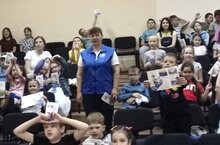Сегодня в гостях у "Веселой страны" была инспектор ГИБДД, нам рассказали о правилах безопасности на дорогах, называлось мероприятие "Безопасное колесо". А еще ребята танцевали. рисовали и играли в веселые эстафеты!