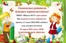 Внимание!!! Родителям будущих первоклассников... 22.03.2022