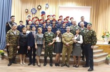 Сегодня в нашей школе прошла встреча учащихся 5-10 классов с союзом десантников Татарстана и морских пехотинцев республики . Гостей встретили музыкальным приветствием, танцем, песней и ансамблем флейтистов. Гости провели урок Мужества, рассказали ребятам о своей работе с молодежью, о палаточных лагерях, о тренировочных сборах и прыжках с парашютом, которые совершали подростки. А еще звучали песни в их исполнении. Морпехи и десантники рассказали о службе в армии, о военных действиях, в которых им приходилось участвовать. Рассказали также о любви к матери, что нужно любить, ценить своих матерей.