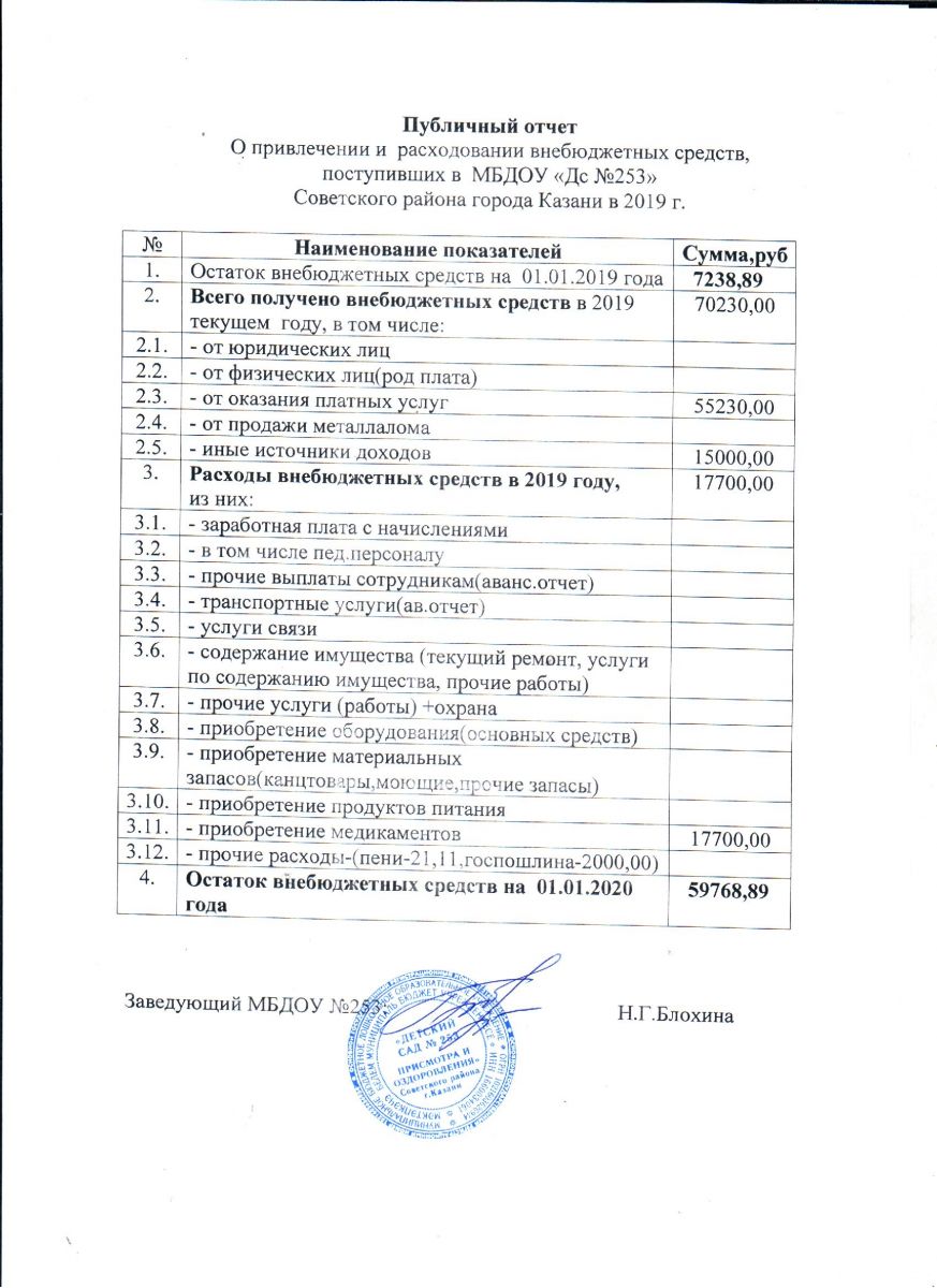 Отчет о привлечении и расходовании внебюджетных средств в 2019 году