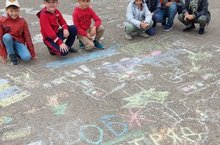 Сегодня в нашем пришкольном лагере "Антошка" провели конкурс рисунков на асфальте "Правила ПДД и ОБЖ "