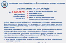 ФЕДЕРАЛЬНАЯ НАЛОГОВАЯ СЛУЖБА ПО РТ СООБЩАЕТ ОБ УПЛАТЕ НАЛОГОВ ДО 3 ДЕКАБРЯ!