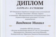 Вандюков Михаил - Лауреат II степени XIV Открытого Городского конкурса юных исполнителей на домре и балалайке "Звонкие струны".