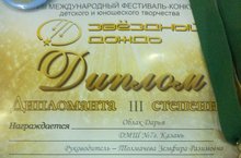 Облак Дарью (преподаватель Толмачева З.Р.) - Дипломанта III степени Международного фестиваля-конкурса "Звездный дождь".