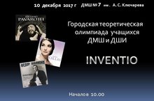 Городская теоретическая олимпиада учащихся ДМШ и ДШИ «INVENTIO» 06.12.2017