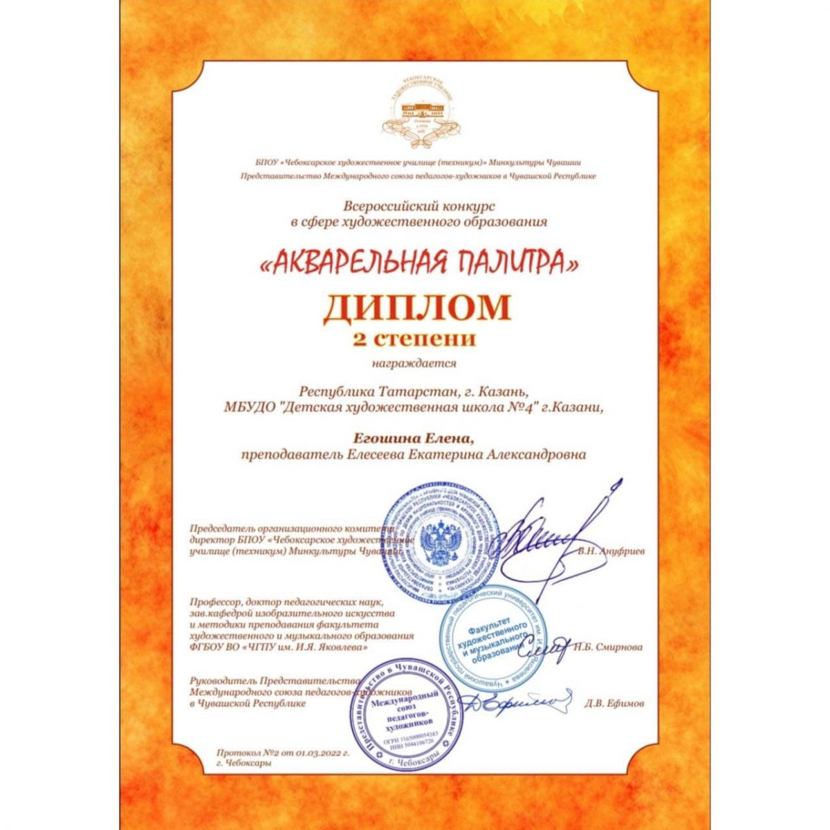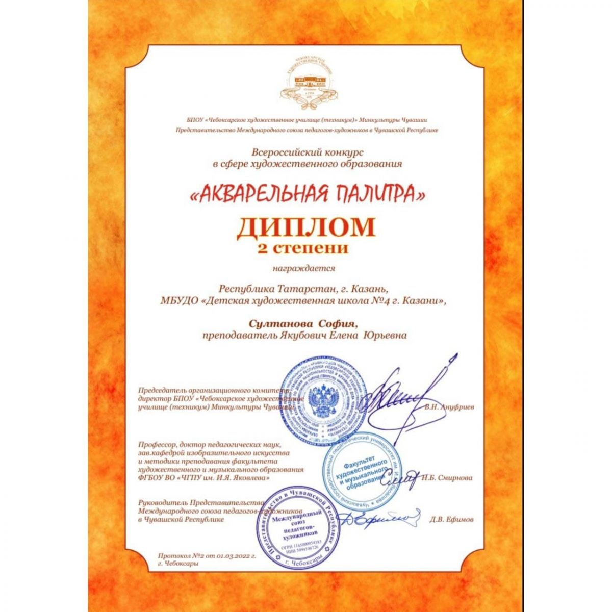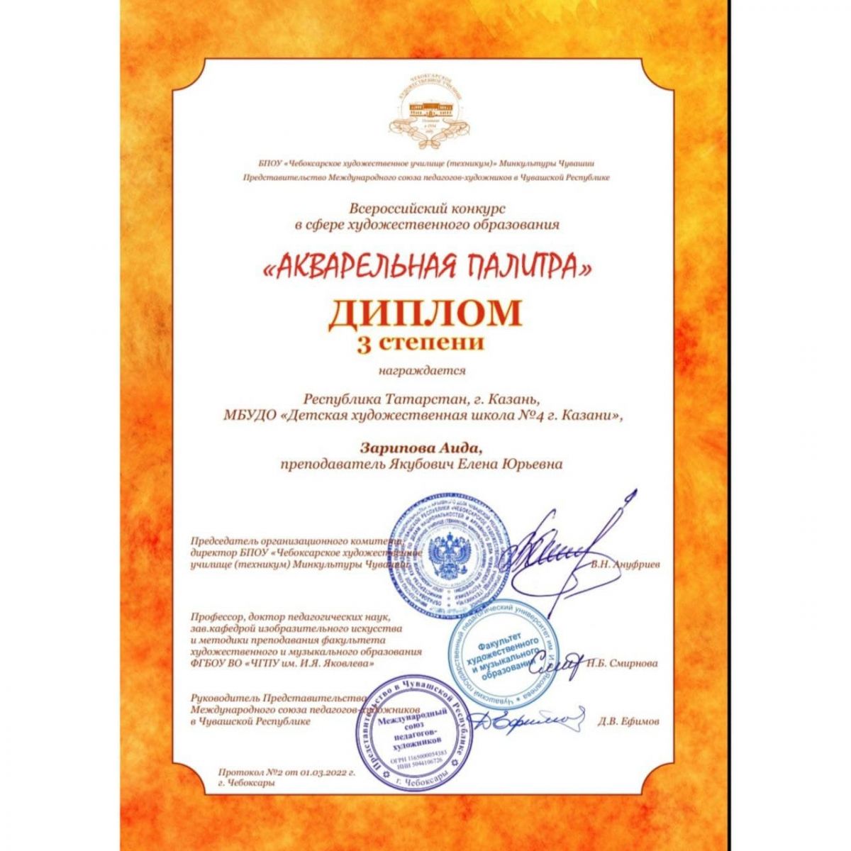 Поздравляем наших учащихся с призовыми местами во Всероссийском конкурсе в сфере художественного образования "Акварельная палитра" (г.Чебоксары)!
