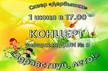 1 июня в 17.00 в сквере «Дербышки» состоится концерт Детской школы искусств № 9 «Здравствуй, лето!», посвященный Международному Дню защиты детей