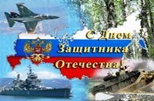 ПОЗДРАВЛЕНИЕ 23.02.2017 Поздравляем вас с Днем защитника Отечества – праздником мужества, благородства и чести! От всей души желаем Вам творческих успехов, счастья, благополучия и всего самого доброго! Пусть трудности, встречающиеся на вашем пути, будут всегда легко преодолимы. Крепкого здоровья, душевного тепла и праздничного настроения!