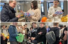 Встречали студентов у входа в колледж с конфетами.