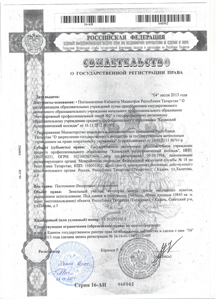 | Короткое название: | ГАПОУ "Казанский политехнический колледж" / Казан политехника көллияте " ДАҺБУ |
