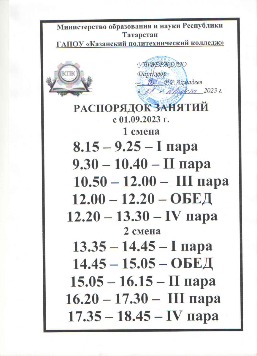 - Распорядок занятий с 01.09.2023г. / Дәресләр тәртибе 01.09.2023 ел.