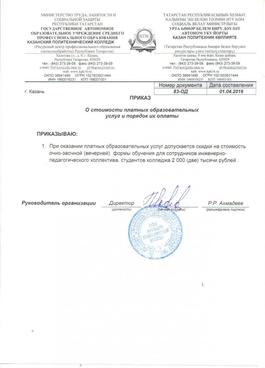 | Короткое название: | ГАПОУ "Казанский политехнический колледж" / Казан политехника көллияте " ДАҺБУ |