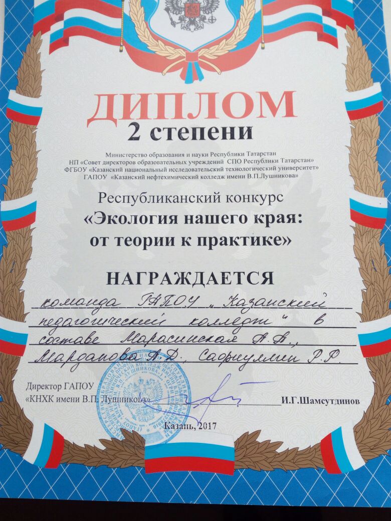 Команда Казанского педагогического колледжа в составе: Марасинская А.А., Марданова А.Д., Сафиуллин Р.Р. заняла почетное 2 место.