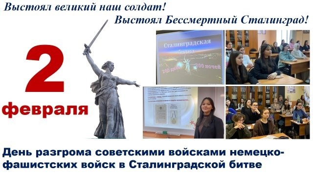 2 февраля - День разгрома советскими войсками немецко-фашистских войск в Сталинградской битве.