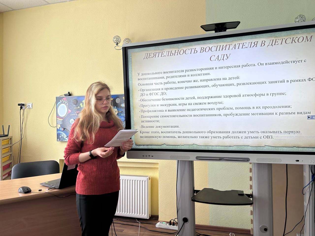 В завершении декады ПЦК педагогики психологии дошкольного образования проведено итоговое мероприятие для студентов 3-4 курсов специальности Дошкольное образование, Преподавание в нач. классах и Физическая культура на тему: "Профессия - педагог, за и против". Были рассмотрены важные вопросы профессионального ориентирования и перспективы развития дошкольного и начального образования в целом.