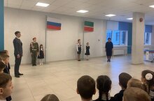 Учащимся 1-х классов в поднятии флагов помогали кадеты – Литвиненко Арина и Мустафин Марсель. В остальных классах церемония проводилась в учебных кабинетах совместно с классными руководителями и учителями-предметниками.