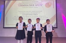 Дипломы III степени: Садыков Тимур, Калинин Роман (3И класс), Муравьев Егор (3Б класс) и Муравьева Дарья (7А класс).