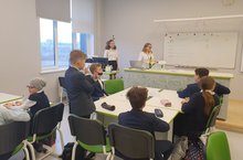 Сегодня на базе нашего лицея состоялся творческий отчет по единой методической теме Советского района «Развитие компетенций участников образовательного процесса в рамках введения государственных образовательных и профессиональных стандартов», на котором свой опыт работы представляли заместители директора по учебной работе образовательных учреждений Советского района г. Казани. О нашем новом лицее гостям рассказала директор Галеева Гульнара Гаппасовна.