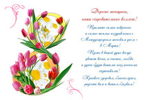 Поздравляем очаровательных, обаятельных и прекрасных женщин с праздником весны! Пусть ласковое весеннее солнце согревает вас своими лучами, а сердце наполняется счастьем и нежностью.