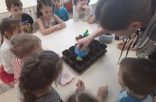 Вместе с ребятами мы подготовили, организовали и провели занятия: «Огород на окне». Первые наши посадки это помидоры, перец, лук, укроп и петрушка.