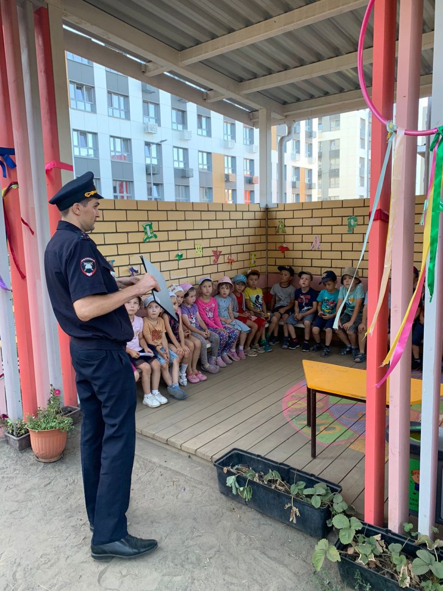 17 АВГУСТА СОСТОЯЛАСЬ ОЧЕРЕДНАЯ ВСТРЕЧА ВОСПИТАННИКОВ СО СТАРШИМ ИНСПЕКТОРОМ (ПО ПРОПАГАНДЕ БДД)ОП БДД ОГИБДД УМВД РОССИИ ПО ГОРОДУ КАЗАНИ КАПИТАНОМ ПОЛИЦИИ ГИЛМУТДИНОВЫМ ЛЕНАРОМ КАМИЛЕВИЧЕМ.