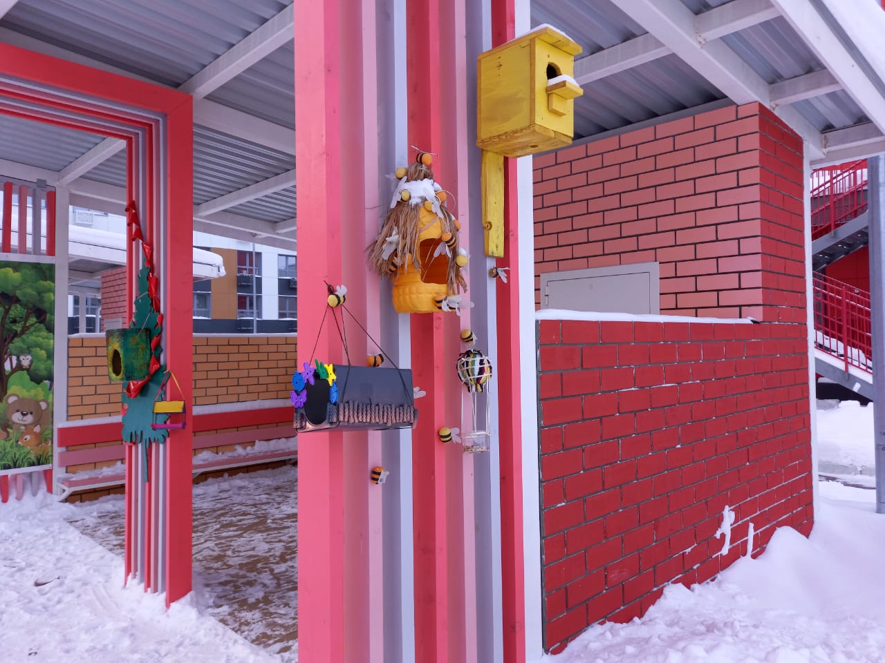 Эти кормушки были развешаны на нашем участке и организована регулярная подкормка птиц.