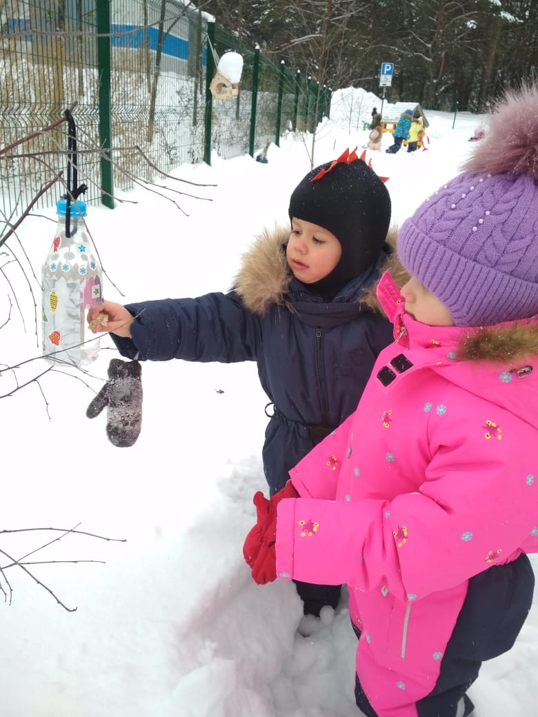Птицы прилетают к нашим жилищам за помощью, и мы должны помочь пережить зиму пернатым друзьям.Подкормка зимующих птиц приносит пользу не только пернатым, но и является значимой в обучении и воспитании детей. Дети через беседы, познавательные занятия и наблюдения узнают о различных видах птиц своей местности, узнают характерные особенности внешнего вида, поведения. Учатся заботиться о пернатых, испытывают радость от осознания того, что, подкармливая птиц, можно спасти их от гибели. Поэтому мы с детьми и их родителями ежегодно проводим акцию “Покормите птиц зимой”.