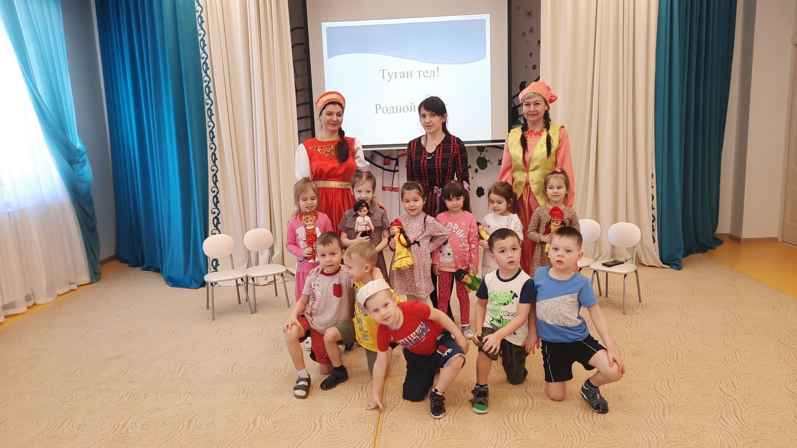 Согласно годовому плану " Года родных языков и народного единства",18 февраля в нашем детском саду было проведено мероприятие ,посвященное Международному Дню родного языка" Халыкара туган тел көне",для воспитанников старшей и подготовительных групп. Детишки с удовольствием поиграли в игры на интерактивной доске, поиграли в народные игры" Гори,гори ясно", " Тимербай",читали стихи, пели песни и танцевали! В нашем детском саду станет доброй традицией проводить День родного языка, где воспитанники каждой национальности завораживают нас культурой своего народа, окутывают нас теплым воздухом дружбы. Ведь наша республика самая многонациональная в России.