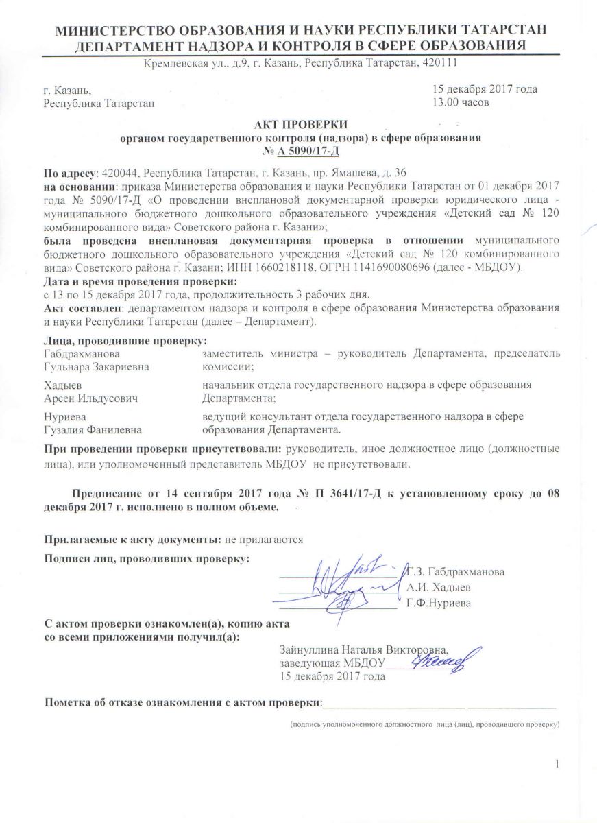 Муниципальное бюджетное дошкольное образовательное учреждение «Детский сад №120 комбинированного вида» Советского района города Казани