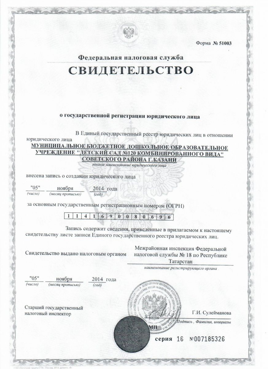 Короткое название: МБДОУ «Детский сад №120 комбинированного вида» Советского района г.Казани
