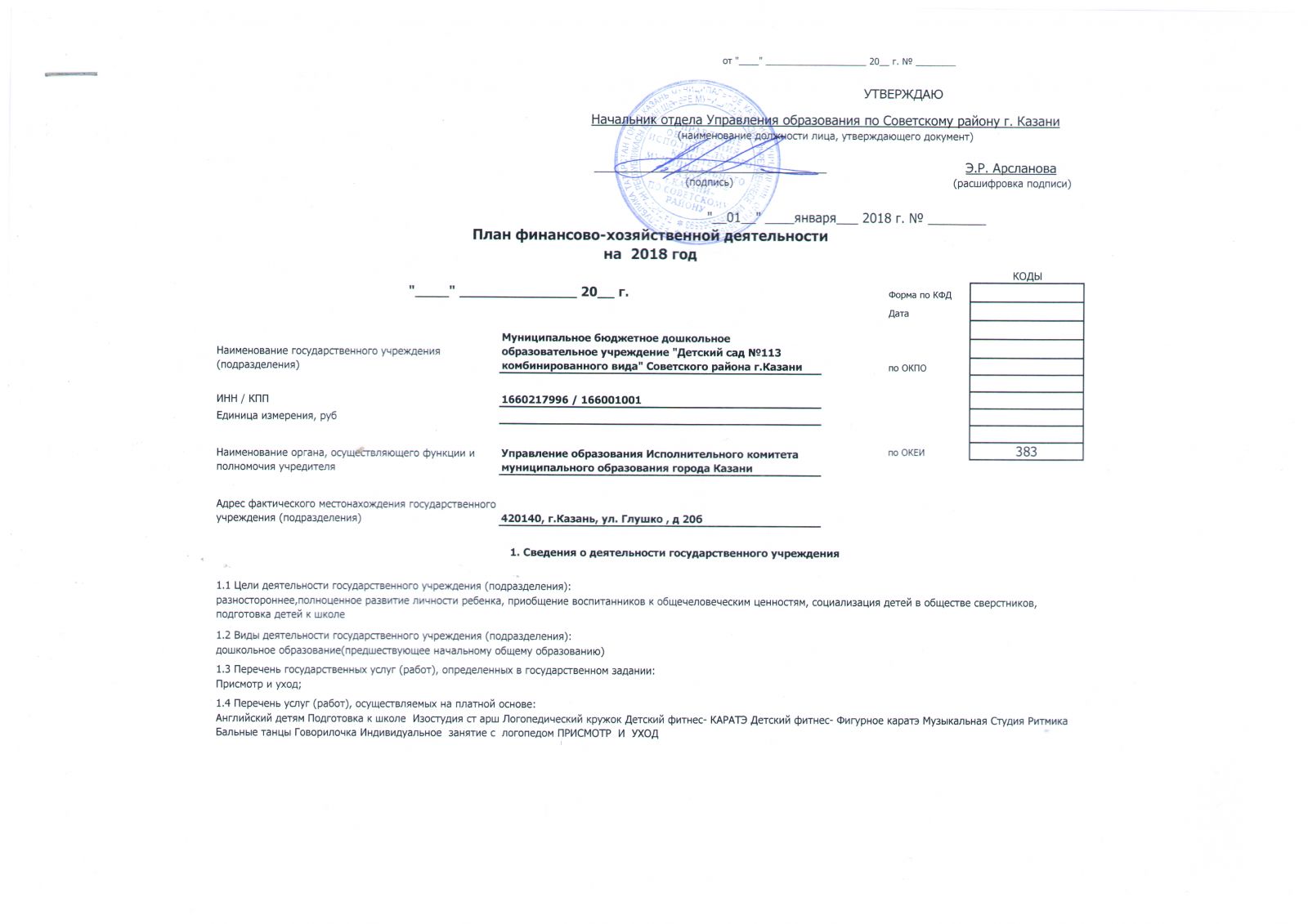 Короткое название: МБДОУ «Детский сад №113 комбинированного вида»