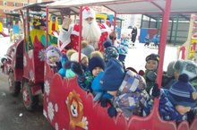 Сегодня наши воспитанники путешествовали вокруг детского сада на веселом и сказочном паровозике. Предварительной работой перед катанием, была проведена беседа о правилах поведения пассажиров в транспорте и правилах поведения пешеходов.Шутки, смех доносились из вагончиков, на которых катались дети. Детская прогулка прошла в атмосфере радости и веселья.