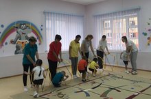 Воспитатели продемонстрировали физкульт-брейк с эластичными лентами. Инструктора по физической культуре ДОУ Советского района испробовали на себе джаст-дэнс, поиграли в командную игру "Лабиринт". Также была организована выставка дидактических пособий, которые сделали воспитатели.