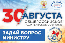 30 августа в очередной раз пройдет Общероссийское родительское собрание с участием Министра просвещения Российской Федерации Васильевой О.Ю.Уже сейчас Вы можете задать вопрос министру -