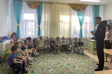 Сегодня старший инспектор (по пропаганде БДД) отделения ПБДД ОГИБДД УМВД России по г. Казани капитан полиции Ленар Камилевич Гилмутдинов провел беседу с воспитанниками подготовительной, старшей и средней групп.