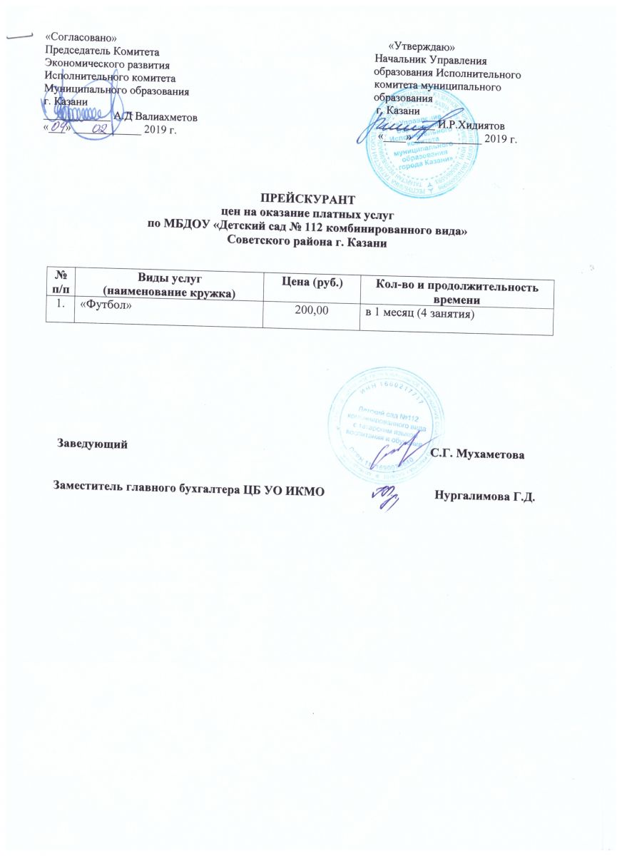 Прейскурант цен на оказани платных услуг. "Футбол".