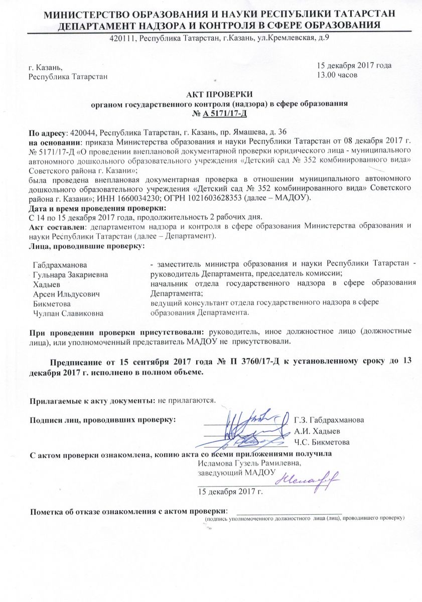| Короткое название: | МАДОУ "Детский сад № 352" Советского района г.Казани |
