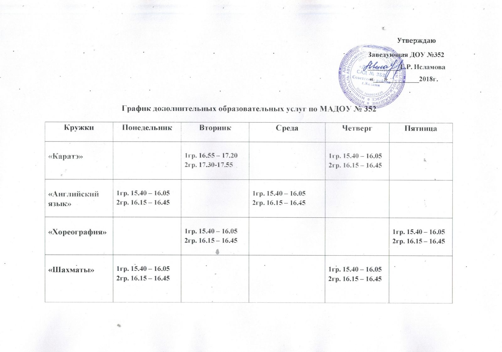 График дополнительных образовательных услуг 2018/2019 учебный год