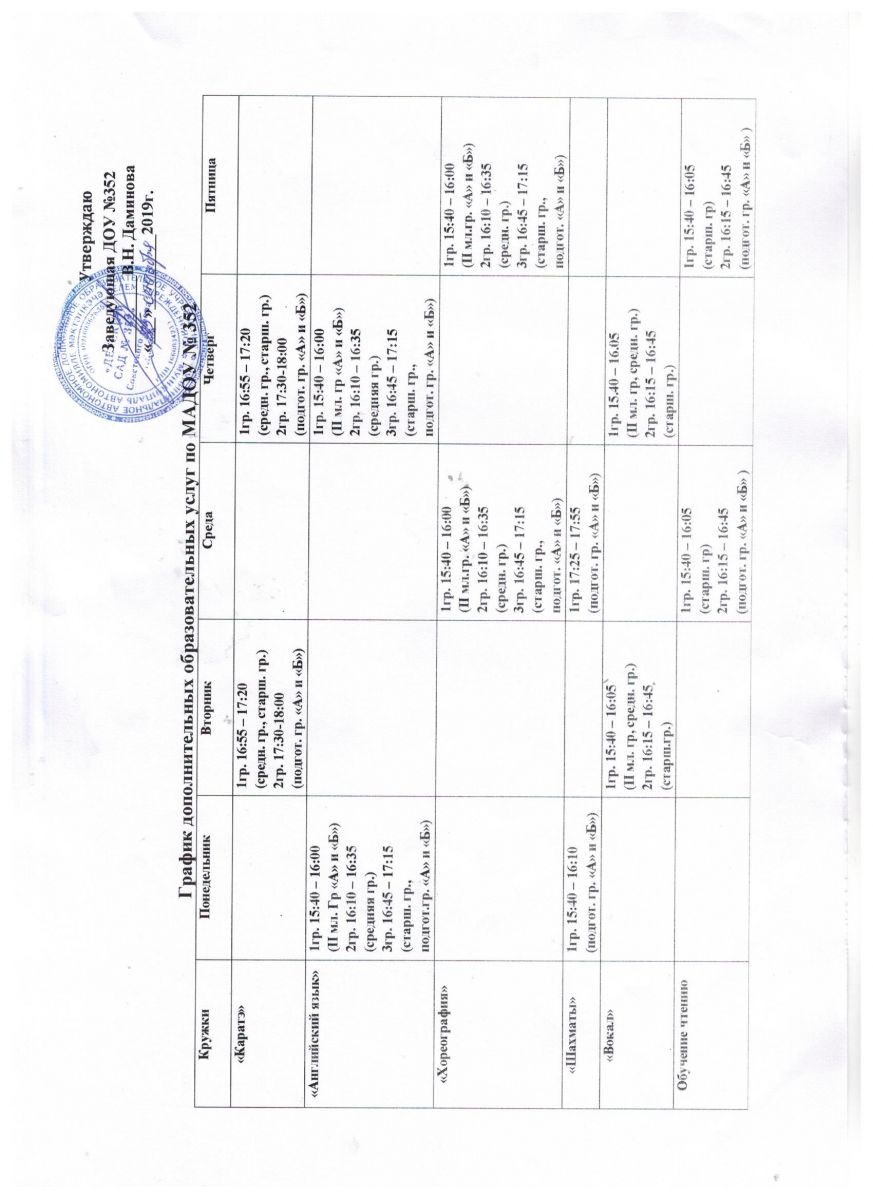График дополнительных образовательных услуг 2019/2020 учебный год