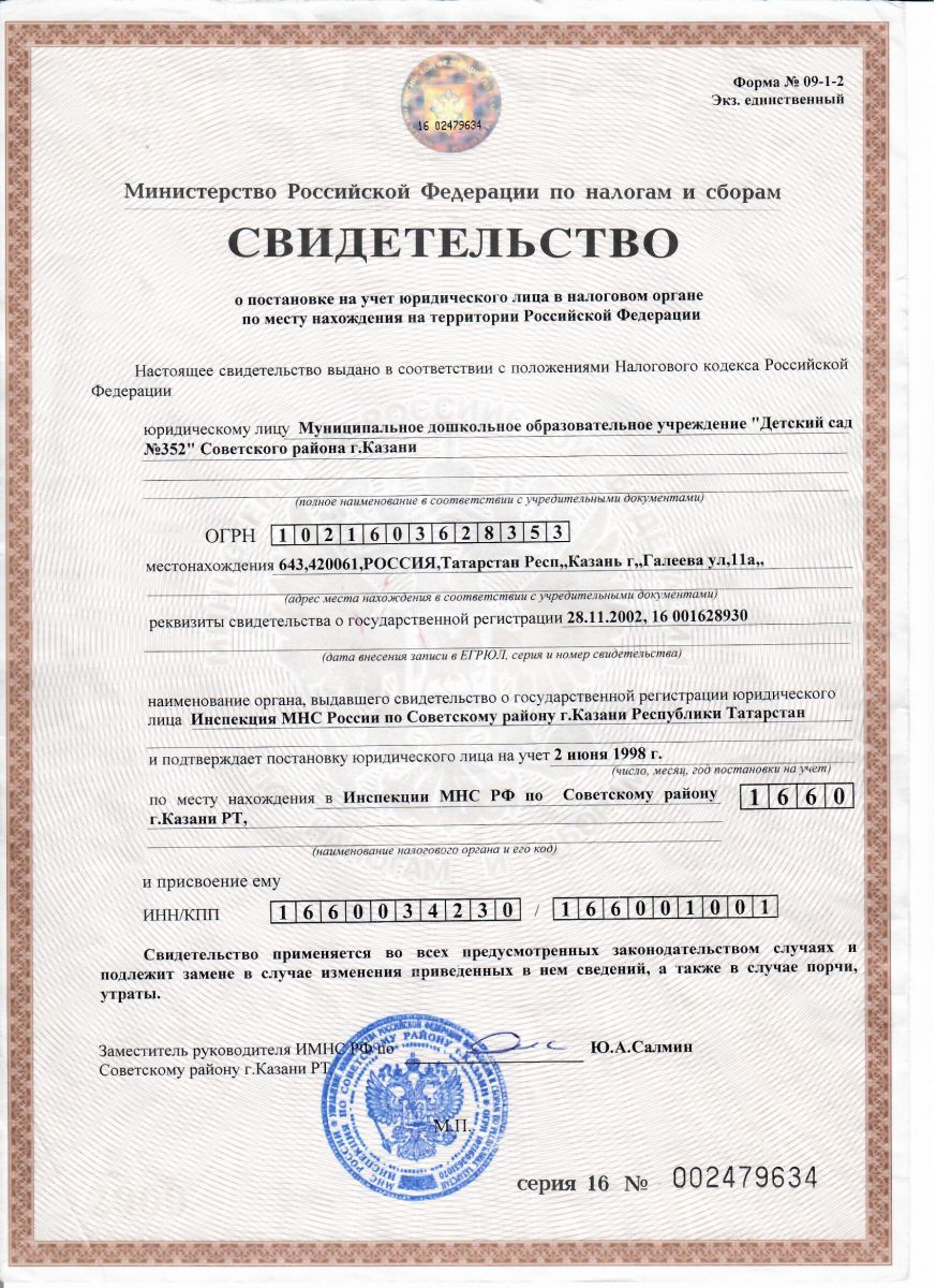 Короткое название: МАДОУ "Детский сад № 352" Советского района г.Казани