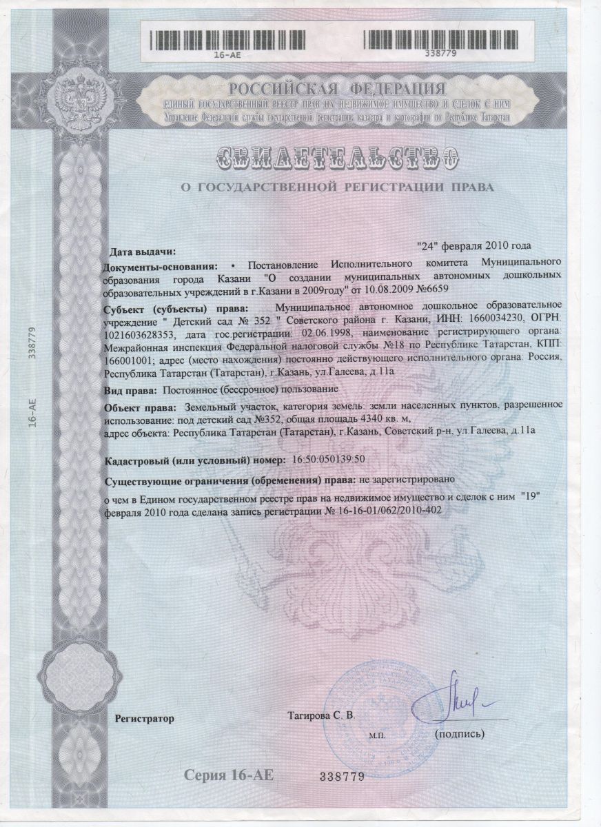 Короткое название: МАДОУ "Детский сад № 352" Советского района г.Казани