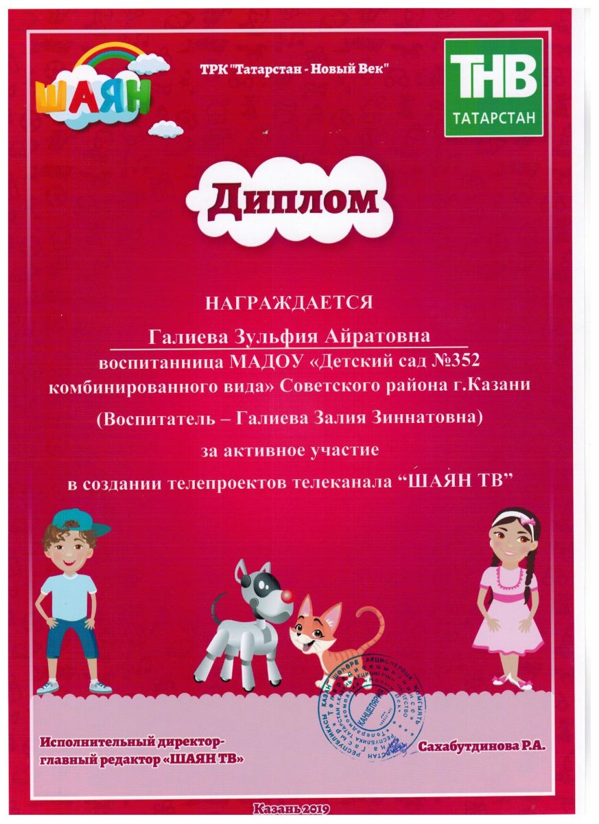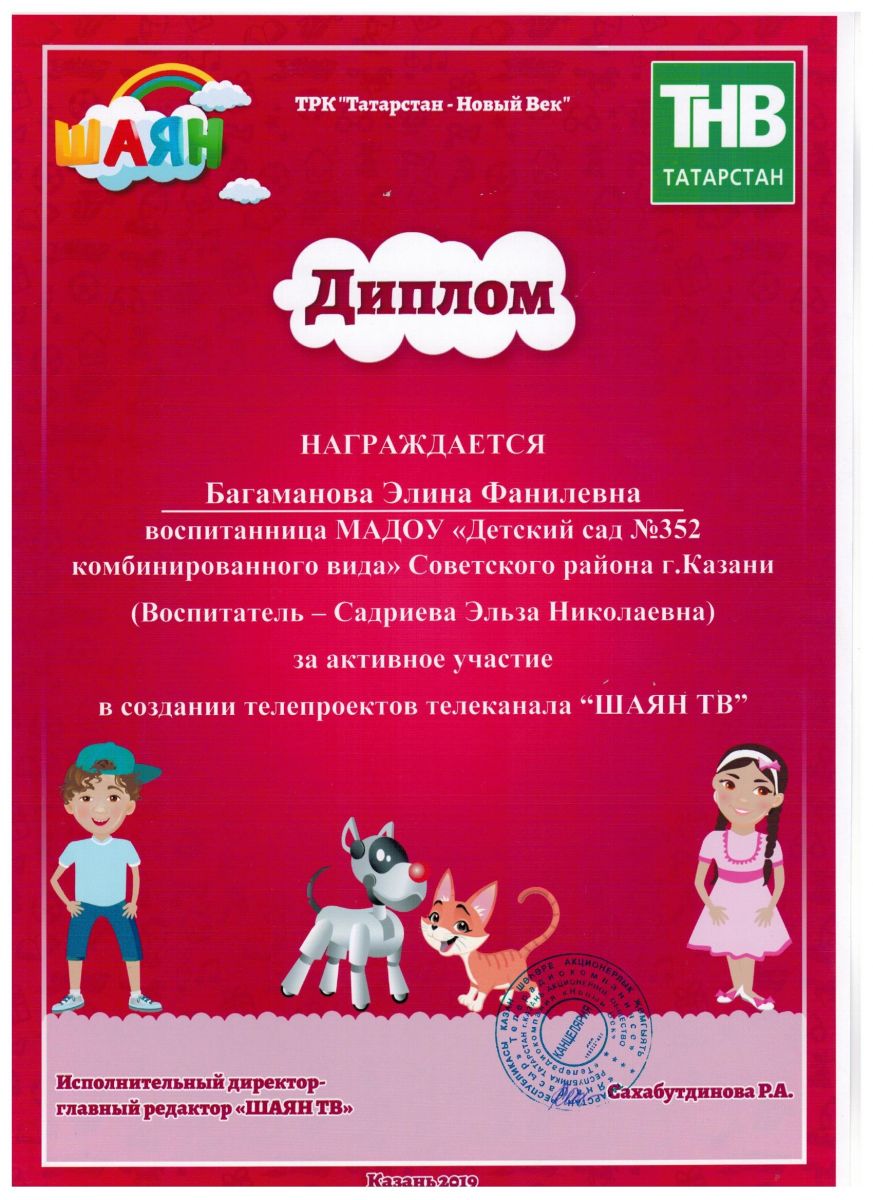 Муниципальное автономное дошкольное образовательное учреждение "Детский сад № 352 комбинированного вида" Советского района г.Казани