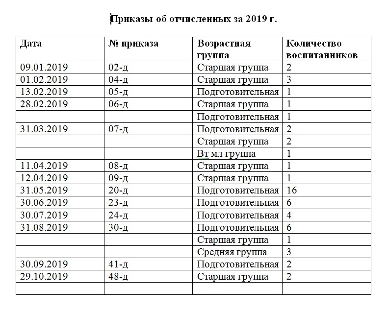 Приказы по отчисленным детям за 2019 год.