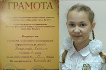 В этом году на XII городской научно-исследовательской конференции имени Д.С.Лихачева, которая проходила в МБОУ «Средняя общеобразовательная школа с углубленным изучением отдельных предметов №62» 17 февраля 2018 года, нашу гимназию представляла ученица 6б класса Мингалиева Камилла. Научный руководитель Камиллы - учитель русского языка и литературы Колпакова Алсу Заитовна. Благодарим Камиллу и Алсу Заитовну за участие и желаем дальнейших исследовательских успехов!
