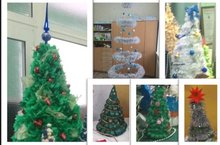 Экология елы уңаеннан, безнең мөгәлимнәребез hәм укучыларыбыз, табигатьне саклау, кайгырту дигән уй белән - Яна ел чыршысын уз куллары белэн әзерлэргэ уйлады! Безнең уйлавыбызча, шул кадәр көч түгеп, куңел җылысын өстәп ясаган бу матур «яна ел кунагыбыз» мәктәп күргәзмәбезгә бик килешеп тора!