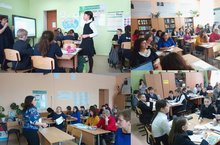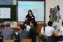 Хәкимуллина Х.Р. 5а сыйныфында "Хикәя җөмлә” дигән темага ачык дәрес үткәрде. Яңа белемнәрне үзләштерү дәресендә укучылар күп төрле эшчәнлек төрләрен башкардылар: фоторәсемнәргә карап, кышкы спорт төрләренә бәйле җөмләләр төзеделәр, "Сабантуй” журналыннан биремнәр башкардылар, үз белемнәрен бәяләделәр. Дәрестә төрле милләт балалары татар теленнән алган белемнәренең системалы булуын күрсәттеләр, биремнәргә тулы, төгәл һәм төпле җаваплар бирделәр.