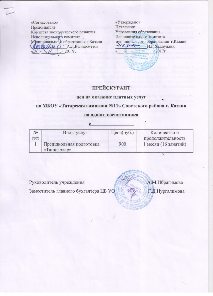 Положение об оказании платных образовательных услуг в МБОУ "Татарская гимназия № 11"