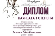 Ученик 1 А класса Ризванов Гайсэ активный участник многих литературных конкурсов. В преддверии дня рождения великого тататрского поэта Г.Тукая он принял участие в конкурсе и стал Лауреатом I степени республиканского творческого конкурса "В созвездии Пушкина и Тукая". Поздравляем! Котлыйбыз!