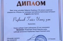 Бөек татар шагыйре Габдулла Туайның 136 -еллыгы уңаеннан уздырылган " Моңлы саз чыңнары" республикасы бәйгесендә 1 нче А сыйныфы укучысы Ризванов Гайсә ( укытучысы- Корбанова Лидия Николаевна) катнашып, II дәрәҗә Дипломга лаек булды. Котлыйбыз һәм яңа уңышлар телибез!