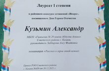 2 нче Б сыйныф укучысы Кузьмин Александр Ватан геройларына багышланган район сочинениялар бәйгесендә 1 дәрәҗә Лауреат исеменә лаек булды. Котлыйбыз!